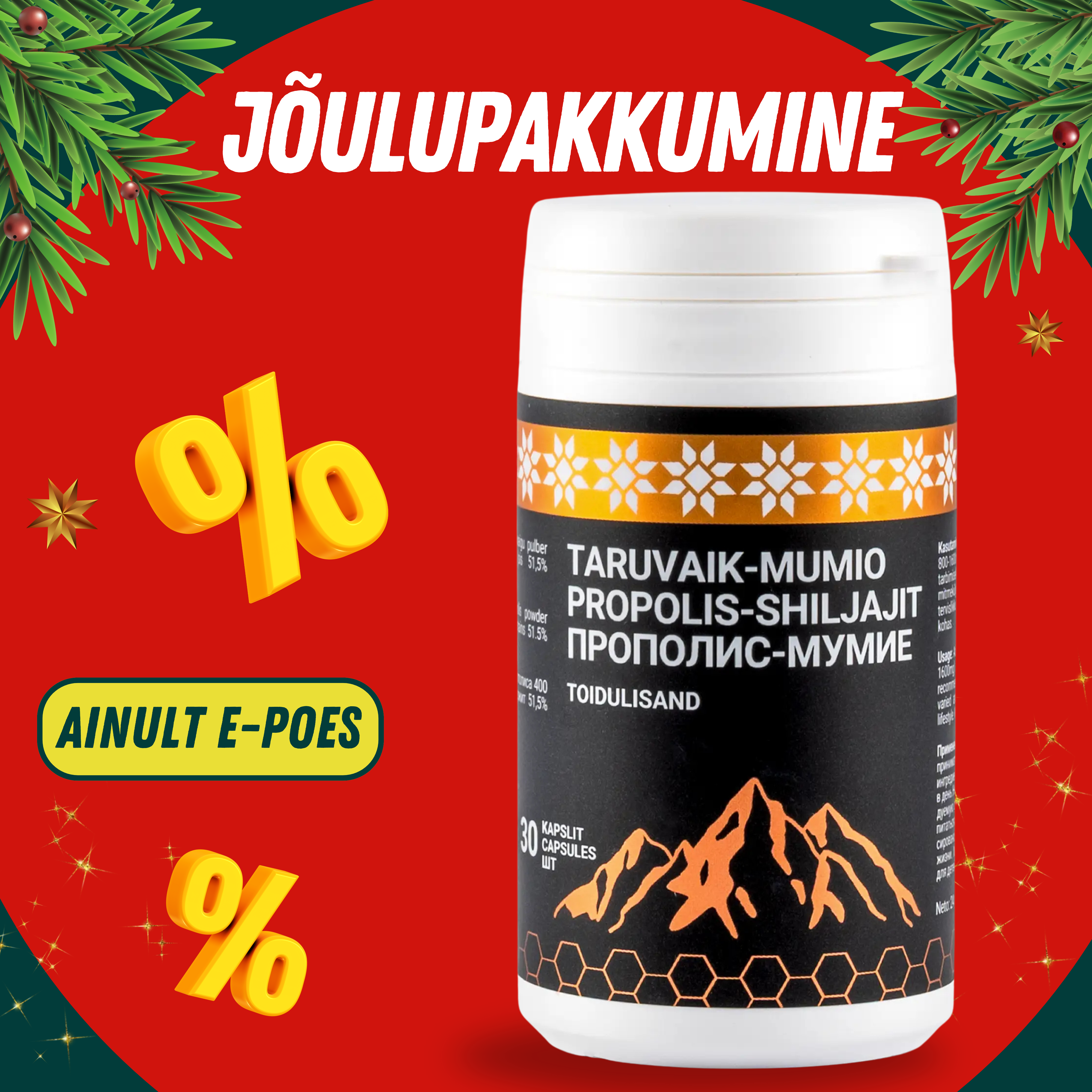 Koostisosad (1 kapsli) kohta: Taruvaigu pulber 400mg, Mumio pulber 400mg, (sis 51,5% fulvohappeid), kapsli kest (želatiin).