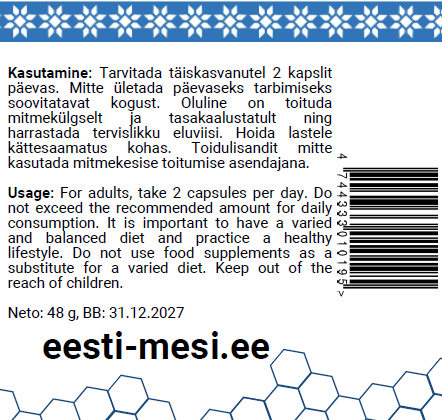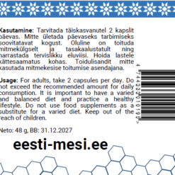 Kasutamine: Tarvitada täiskasvanutel 2 kapslit päevas, soovitavalt enne suuremat söögikorda. Mitte ületada päevaseks tarbimiseks soovitatavat kogust. Toidulisandit mittekasutada mitmekesise toitumise asendajana! Oluline on toituda mitmekülgselt ja tasakaalustatult ning harrastada tervislikku eluviisi. Hoida lastele kättesaamatus kohas.